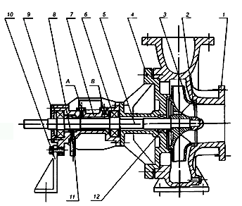 RY型热油泵为单级悬臂式结构分为脚支撑和中心支撑,泵的进口为轴向吸入,出口为中心垂直向上。泵和驱动电机通过弹性联轴器合装于同一底座上。整个机组无需加冷系统。 |
