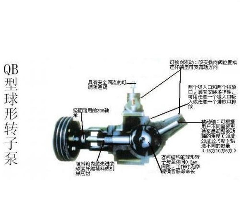 QB球型输送泵吸收国内外技术研制而成的。该泵结构_,球形转子部件是万向联轴节原理的应用。在球形壳内,球形转子装在驱动轴上,进入球形转子的液体可直接排入管道进行输送。
