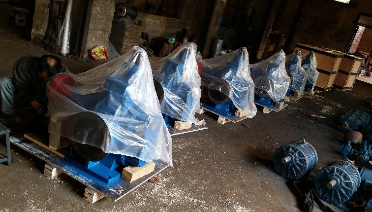 4、将机组放在埋有地脚螺栓的基础上,在底座与基础之间,用成对的楔垫用校正用。